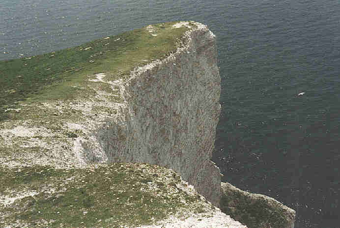 One of the seven wonders of the Island: Needles you cannot thread. These chalk stacks are probably the best known landmark on the Island. The lighthouse is no longer manned. Until recently, the transfer of Christmas festive cheer to the lighthouse was an obligatory part of the local television news each year. The building in the background is part of a rocket testing station (from the second world war, now disused). The area is owned by the National Trust. Southern Vectis buses serve the area in Summer - but the trip is not for the fainthearted! The bus climbs the cliff edge zig-zag road to the delight of those passengers who have not shut their eyes (see my bus section).